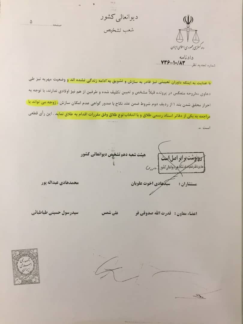 در اين پرونده به استناد اين شرط حكم به نفع زوجه با تمام حقوق قانوني صادر شد البته وصول مهريه مستقل بايد اقدام شود و اين حق براي تقسيط آن براي زوج وجود دارد كه در جاي خود صحبت خواهد شد.