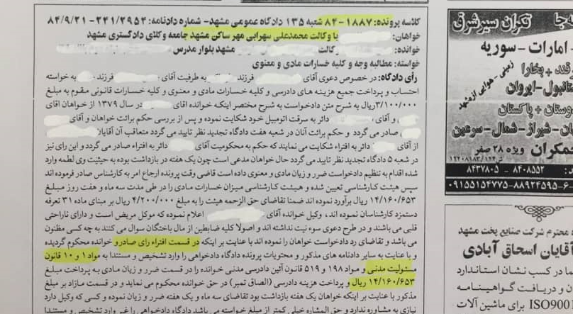 وکیل پایه یک دادگستری و مشاور حقوقی